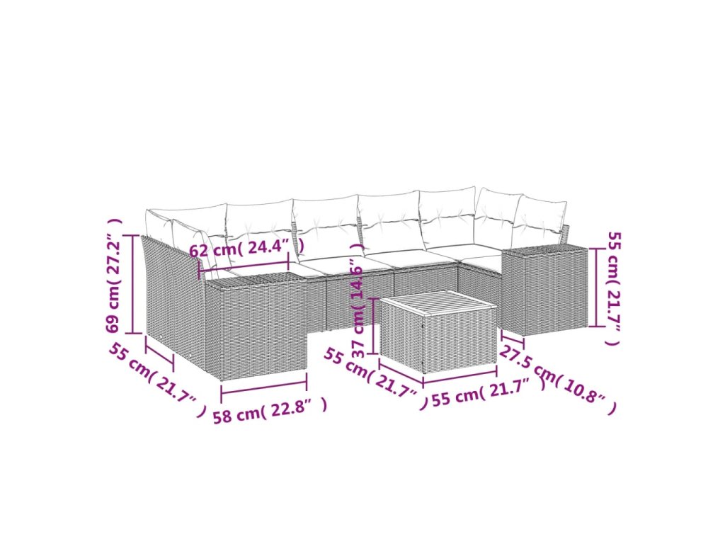 Tato zahradní sedací souprava je dokonalým doplňkem vaší zahrady, terasy nebo dvorku a poskytne vám pohodlné a příjemné místo, kde si můžete povídat s rodinou a přáteli nebo jen tak odpočívat a užívat si pobyt venku.