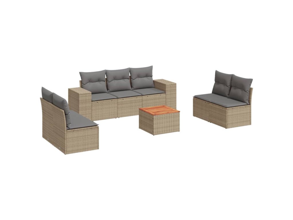 8dílná zahradní sedací souprava s poduškami béžová polyratan 3225401