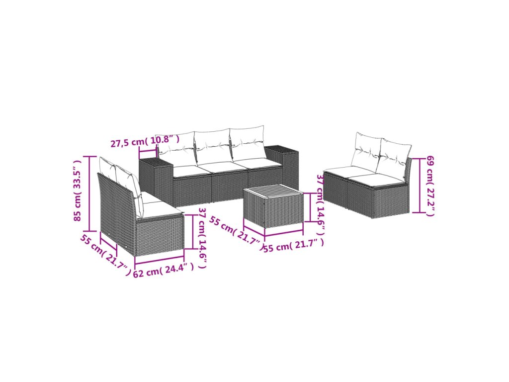 Tato zahradní sedací souprava je dokonalým doplňkem vaší zahrady, terasy nebo dvorku a poskytne vám pohodlné a příjemné místo, kde si můžete povídat s rodinou a přáteli nebo jen tak odpočívat a užívat si pobyt venku.