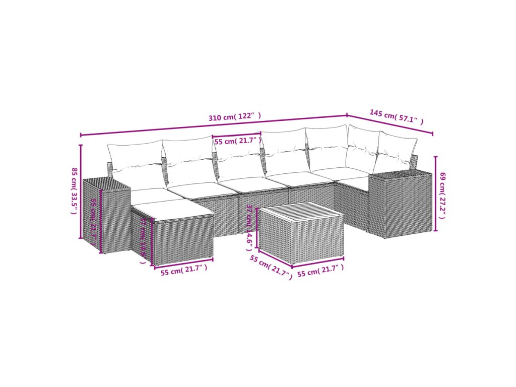 Tato zahradní sedací souprava je dokonalým doplňkem vaší zahrady, terasy nebo dvorku a poskytne vám pohodlné a příjemné místo, kde si můžete povídat s rodinou a přáteli nebo jen tak odpočívat a užívat si pobyt venku.