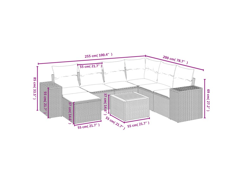 - Modulární design: Tato sada venkovního nábytku se vyznačuje modulární konstrukcí, je tedy zcela flexibilní a lze ji snadno přemisťovat, takže si můžete uspořádat venkovní nábytek dle vašich potřeb.