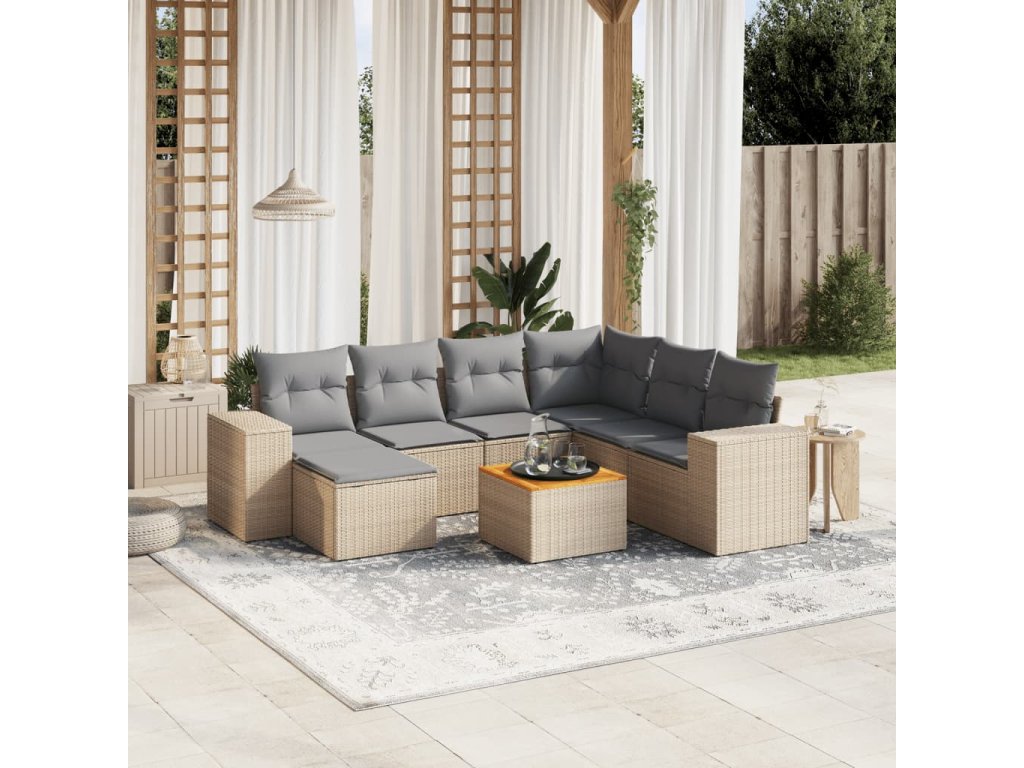 8dílná zahradní sedací souprava s poduškami béžová polyratan 3225562
