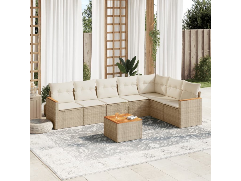 8dílná zahradní sedací souprava s poduškami béžová polyratan 3226037