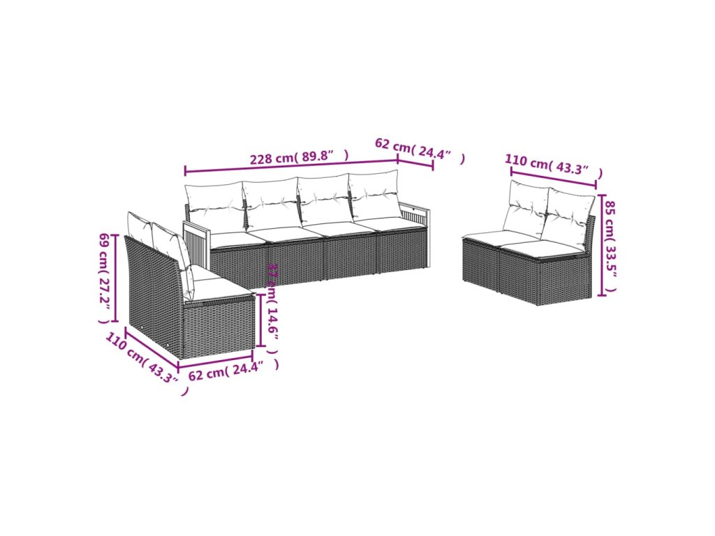 Tato zahradní sedací souprava je dokonalým doplňkem vaší zahrady, terasy nebo dvorku a poskytne vám pohodlné a příjemné místo, kde si můžete povídat s rodinou a přáteli nebo jen tak odpočívat a užívat si pobyt venku.
