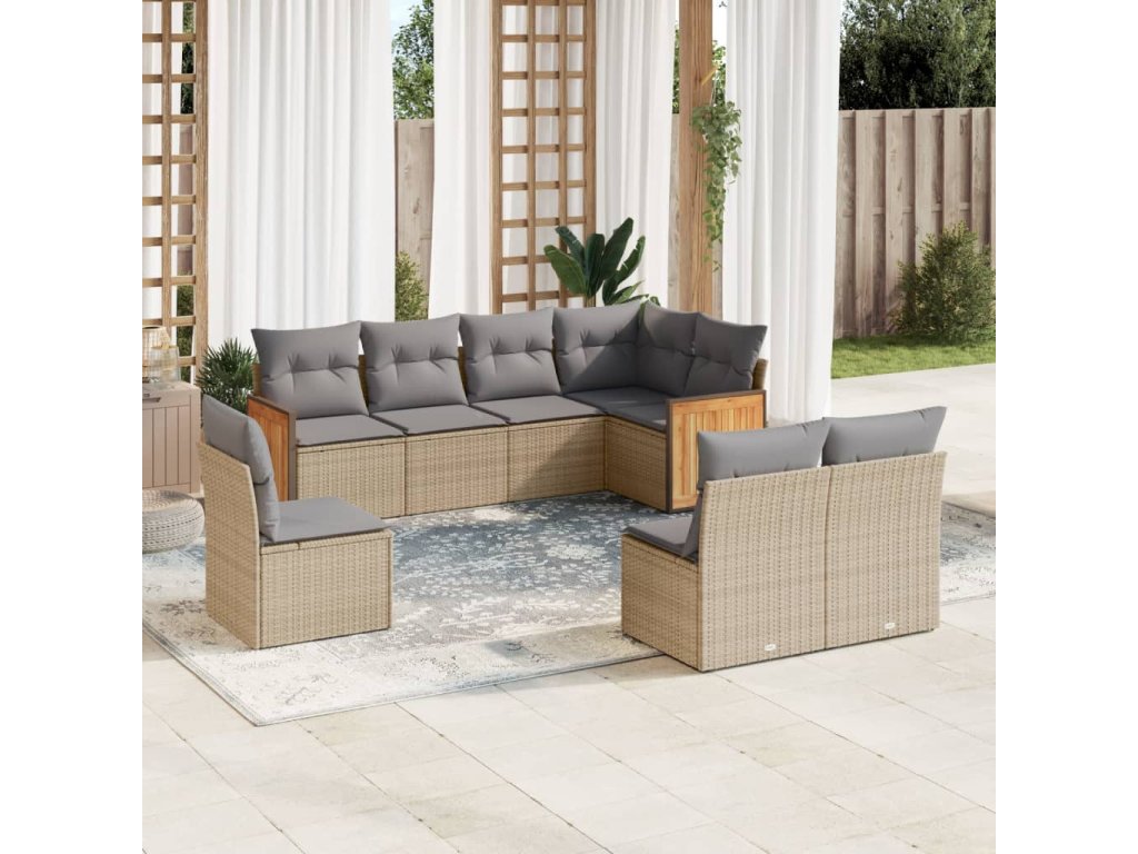 8dílná zahradní sedací souprava s poduškami béžová polyratan 3227725