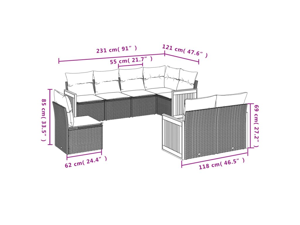 Tato zahradní sedací souprava je dokonalým doplňkem vaší zahrady, terasy nebo dvorku a poskytne vám pohodlné a příjemné místo, kde si můžete povídat s rodinou a přáteli nebo jen tak odpočívat a užívat si pobyt venku.
