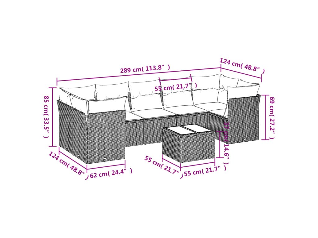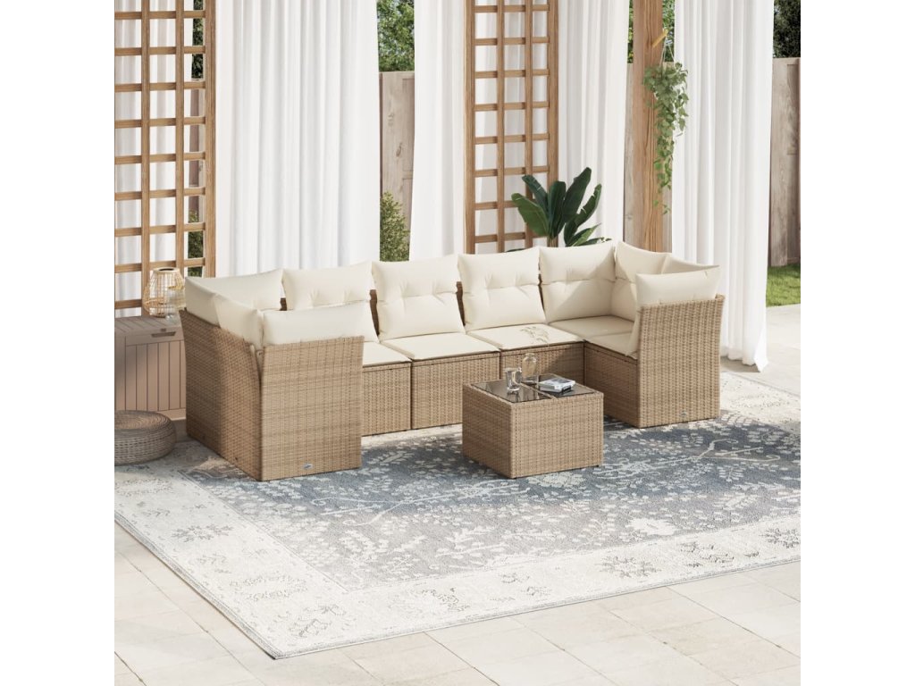 8dílná zahradní sedací souprava s poduškami béžová polyratan 3249127
