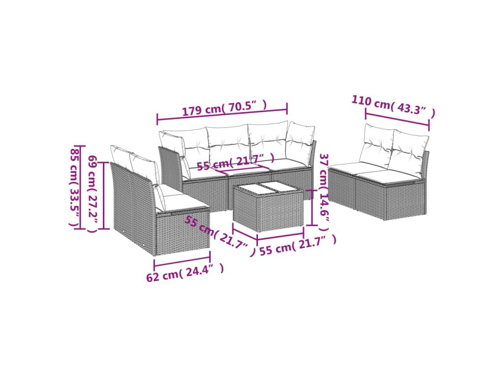 8dílná zahradní sedací souprava s poduškami béžová polyratan 3249257