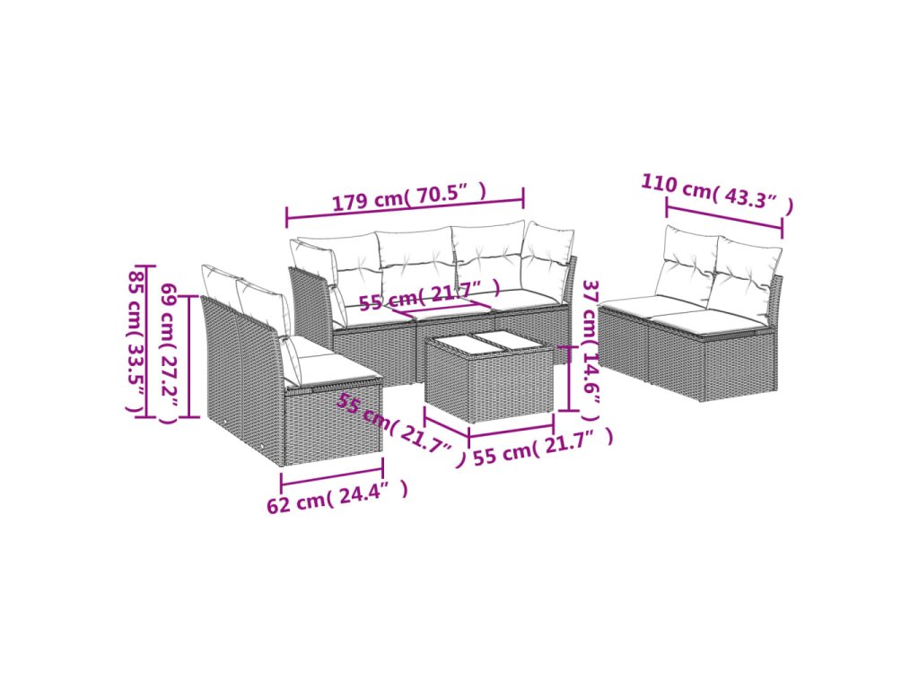 Tato zahradní sedací souprava je dokonalým doplňkem vaší zahrady, terasy nebo dvorku a poskytne vám pohodlné a příjemné místo, kde si můžete povídat s rodinou a přáteli nebo jen tak odpočívat a užívat si pobyt venku.