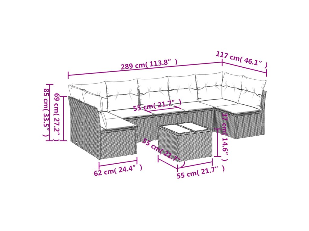 8dílná zahradní sedací souprava s poduškami béžová polyratan 3249277