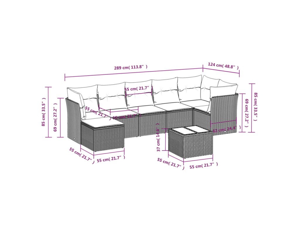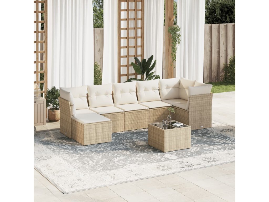 8dílná zahradní sedací souprava s poduškami béžová polyratan 3249817