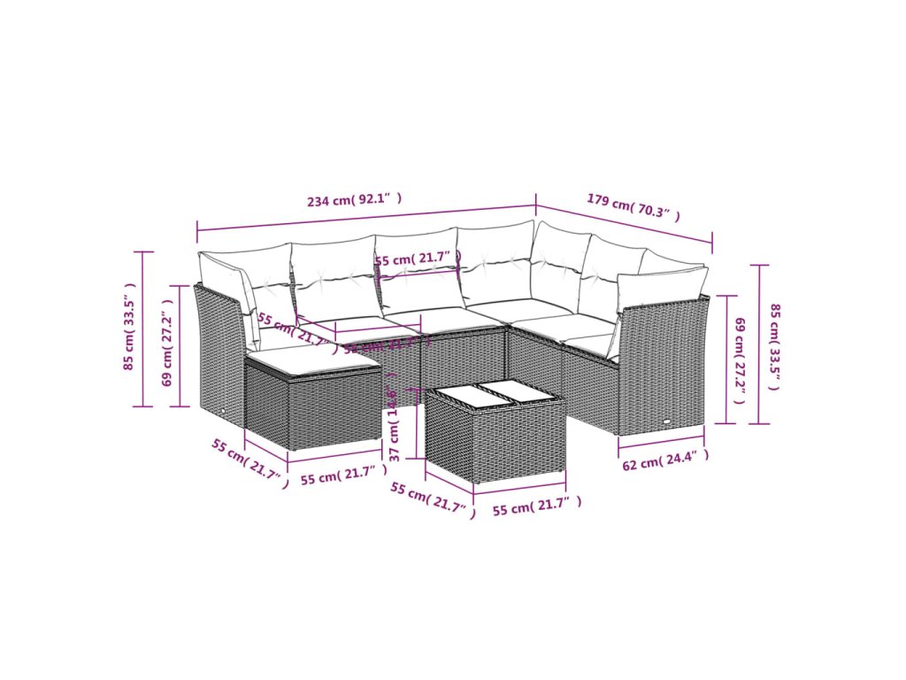 Tato zahradní sedací souprava je dokonalým doplňkem vaší zahrady, terasy nebo dvorku a poskytne vám pohodlné a příjemné místo, kde si můžete povídat s rodinou a přáteli nebo jen tak odpočívat a užívat si pobyt venku.