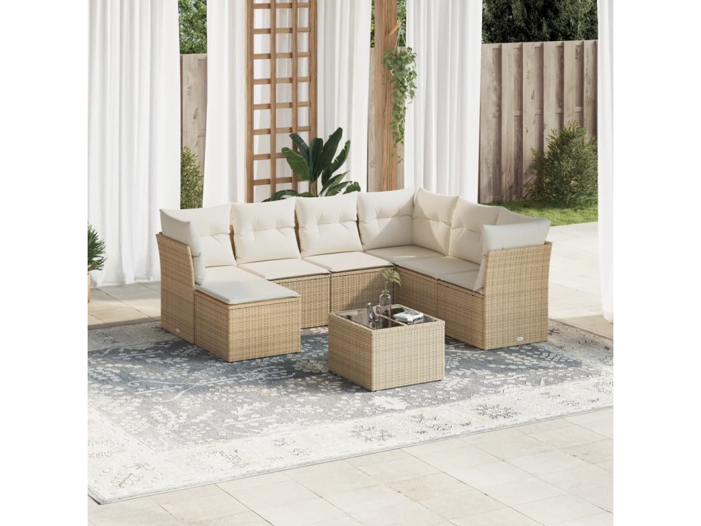 8dílná zahradní sedací souprava s poduškami béžová polyratan 3249837