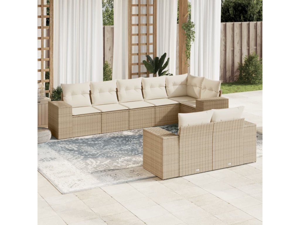 8dílná zahradní sedací souprava s poduškami béžová polyratan 3255155