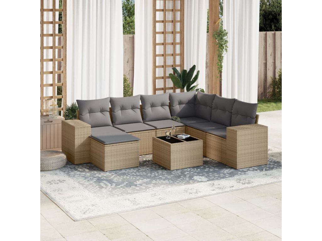 8dílná zahradní sedací souprava s poduškami béžová polyratan 3255246