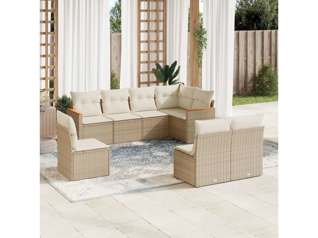 8dílná zahradní sedací souprava s poduškami béžová polyratan 3258446