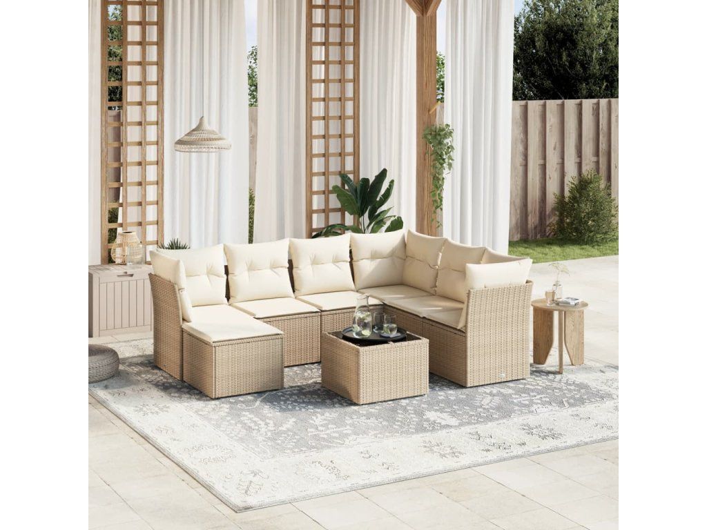 8dílná zahradní sedací souprava s poduškami béžová polyratan 3263224