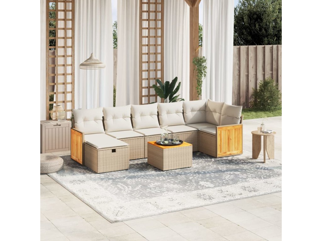8dílná zahradní sedací souprava s poduškami béžová polyratan 3265755