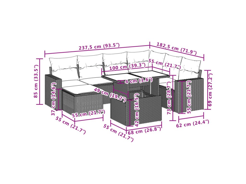 Tato zahradní sedací souprava je dokonalým doplňkem vaší zahrady, terasy nebo dvorku a poskytne vám pohodlné a příjemné místo, kde si můžete povídat s rodinou a přáteli nebo jen tak odpočívat a užívat si pobyt venku.