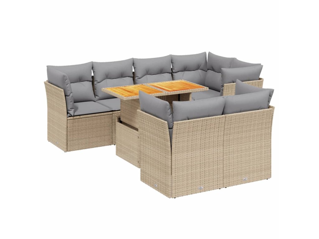 8dílná zahradní sedací souprava s poduškami béžová polyratan 3270709