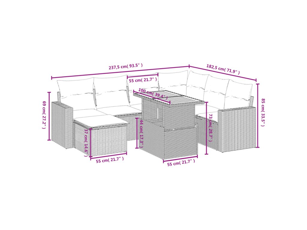 Tato zahradní sedací souprava je dokonalým doplňkem vaší zahrady, terasy nebo dvorku a poskytne vám pohodlné a příjemné místo, kde si můžete povídat s rodinou a přáteli nebo jen tak odpočívat a užívat si pobyt venku.