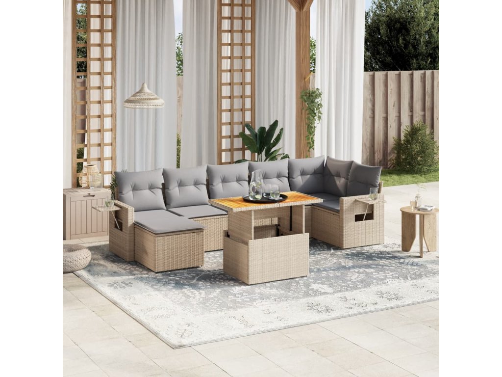8dílná zahradní sedací souprava s poduškami béžová polyratan 3271864