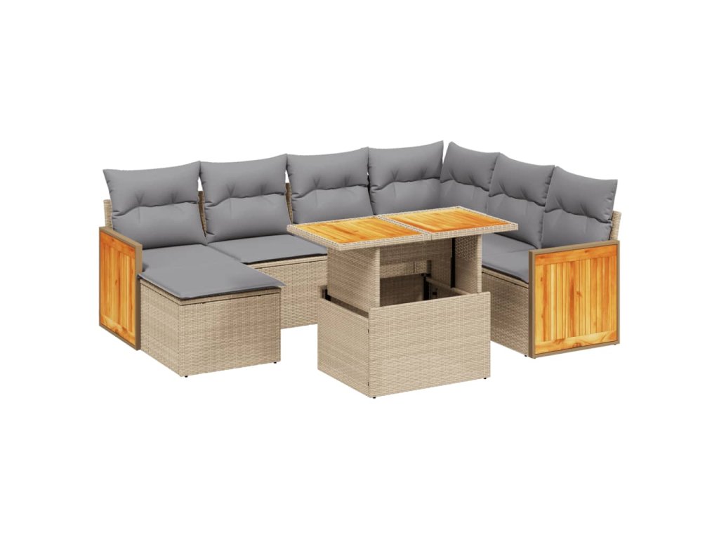 8dílná zahradní sedací souprava s poduškami béžová polyratan 3274076