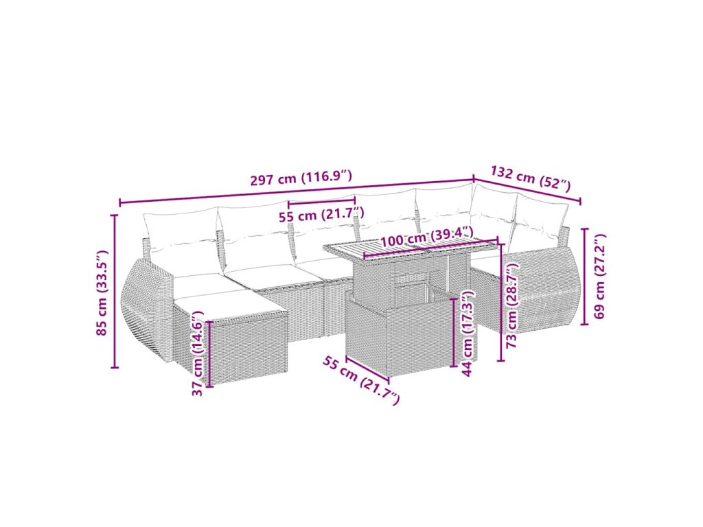 8dílná zahradní sedací souprava s poduškami béžová polyratan 3275823
