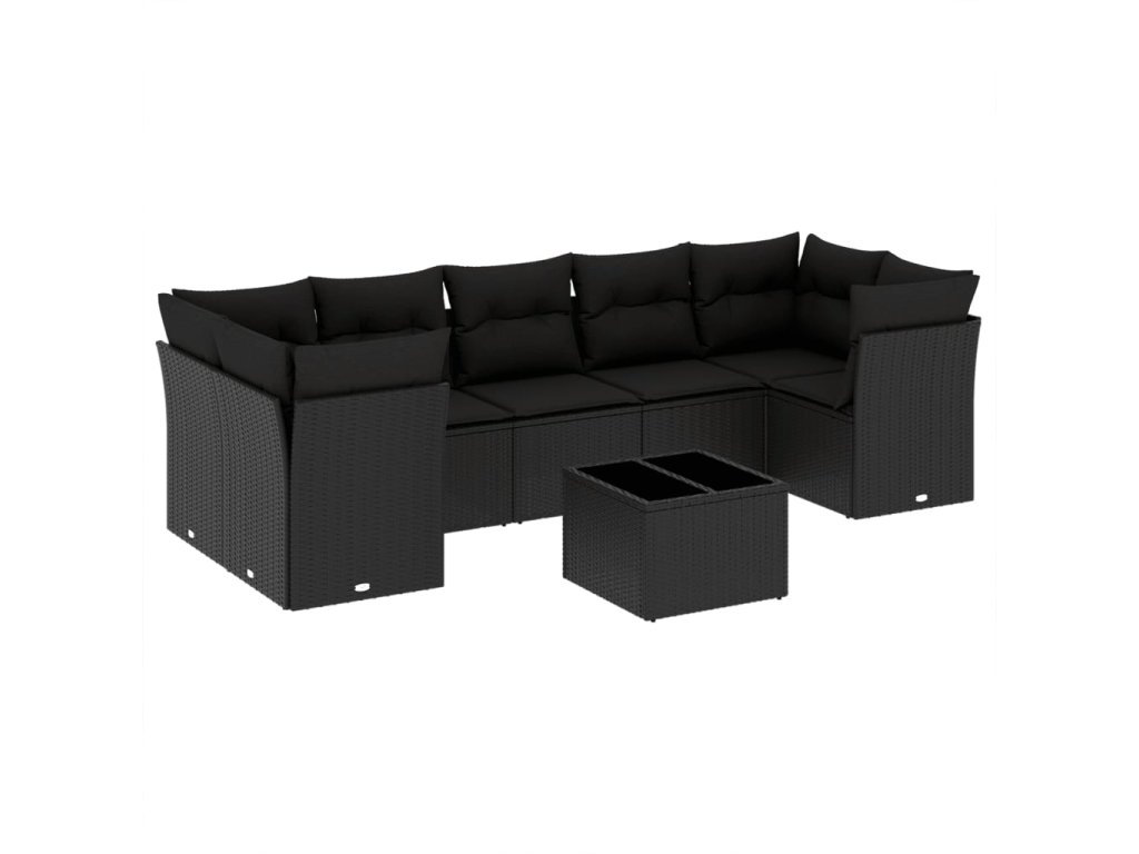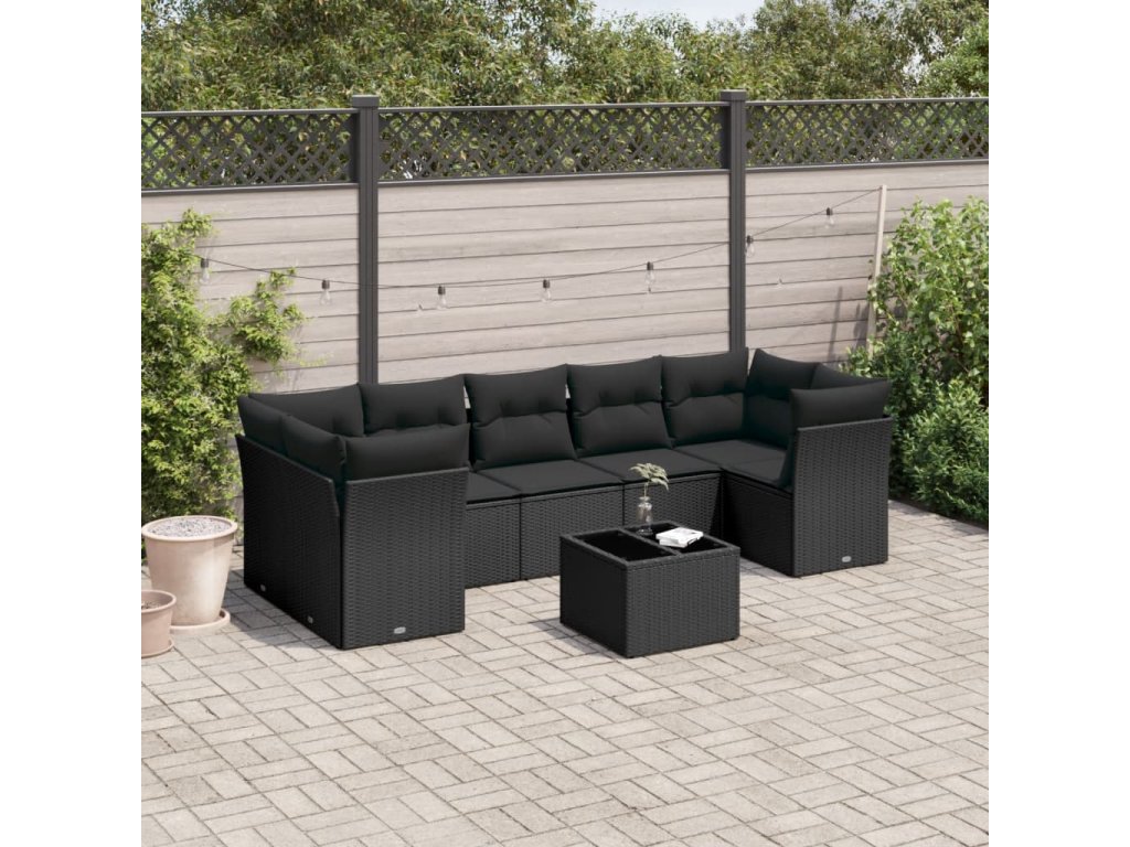 8dílná zahradní sedací souprava s poduškami černá polyratan 3217285