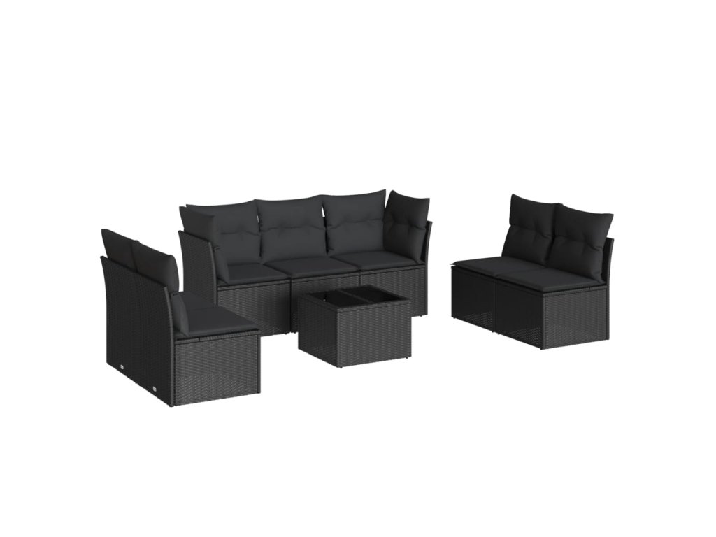 8dílná zahradní sedací souprava s poduškami černá polyratan 3217415