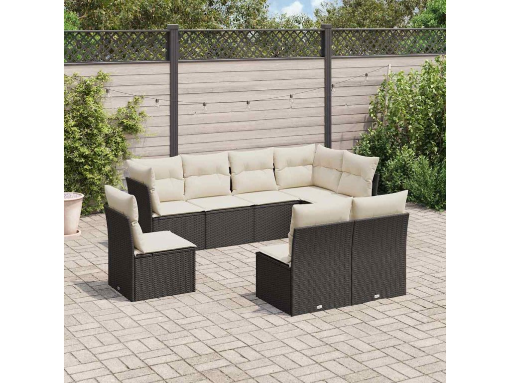 8dílná zahradní sedací souprava s poduškami černá polyratan 3217756
