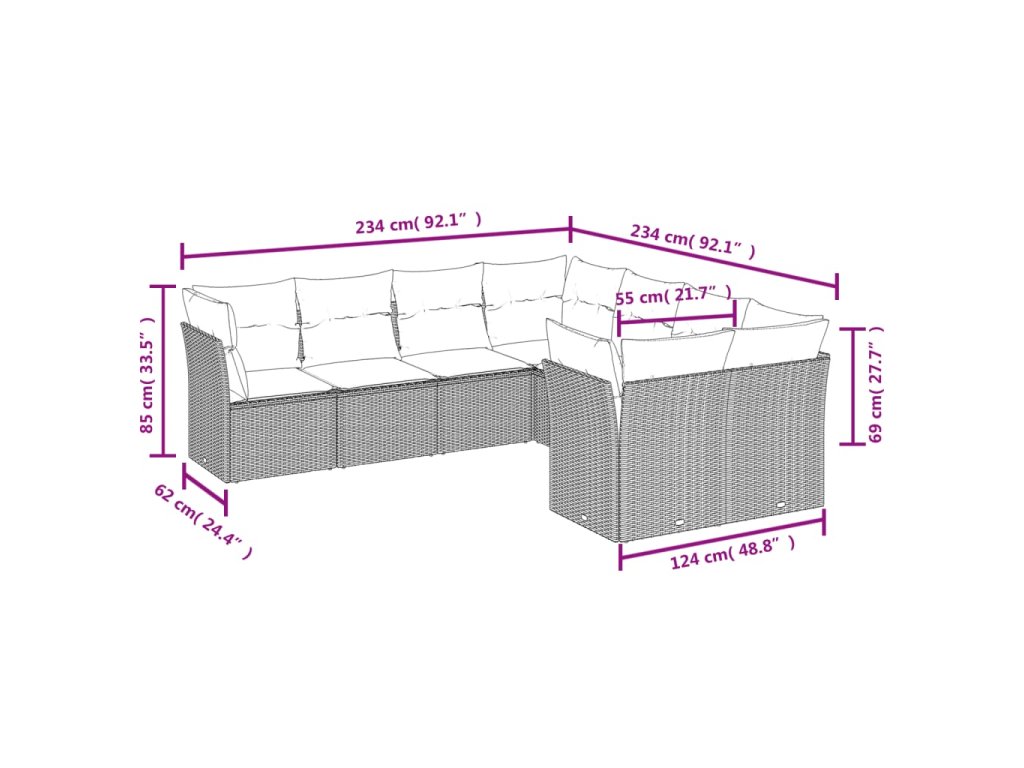 Tato zahradní sedací souprava je dokonalým doplňkem vaší zahrady, terasy nebo dvorku a poskytne vám pohodlné a příjemné místo, kde si můžete povídat s rodinou a přáteli nebo jen tak odpočívat a užívat si pobyt venku.