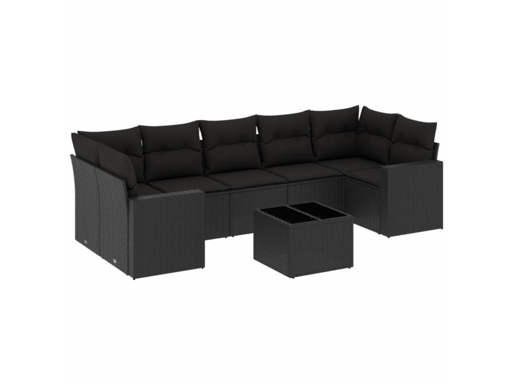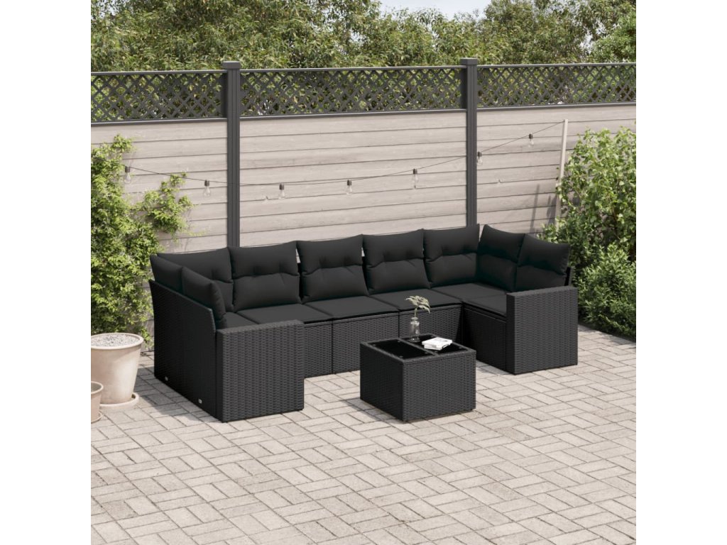 8dílná zahradní sedací souprava s poduškami černá polyratan 3218725