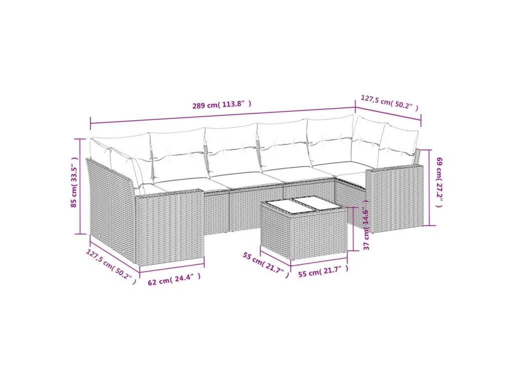 Tato zahradní sedací souprava je dokonalým doplňkem vaší zahrady, terasy nebo dvorku a poskytne vám pohodlné a příjemné místo, kde si můžete povídat s rodinou a přáteli nebo jen tak odpočívat a užívat si pobyt venku.
