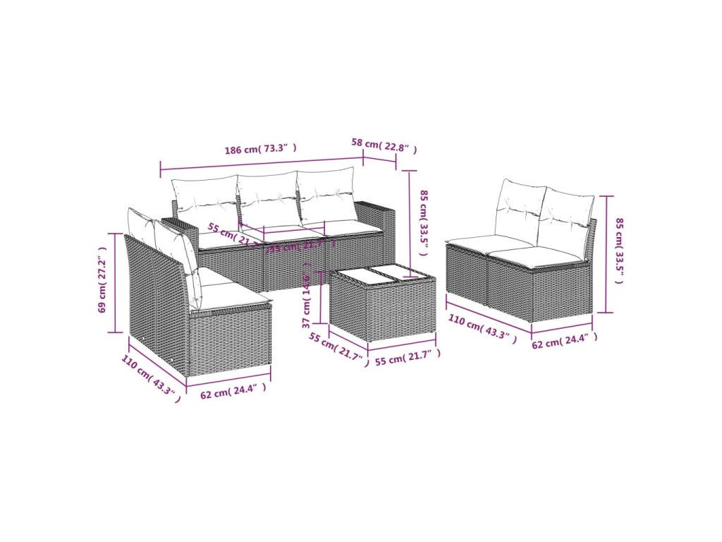 - Modulární design: Tato sada venkovního nábytku se vyznačuje modulární konstrukcí, je tedy zcela flexibilní a lze ji snadno přemisťovat, takže si můžete uspořádat venkovní nábytek dle vašich potřeb.