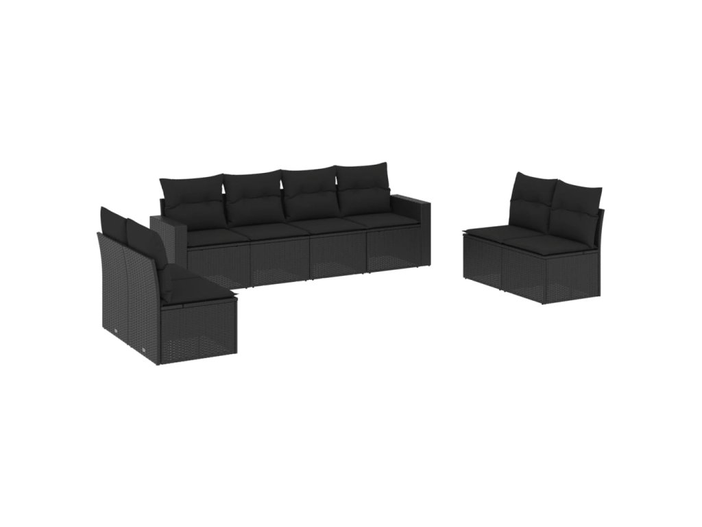 8dílná zahradní sedací souprava s poduškami černá polyratan 3218835