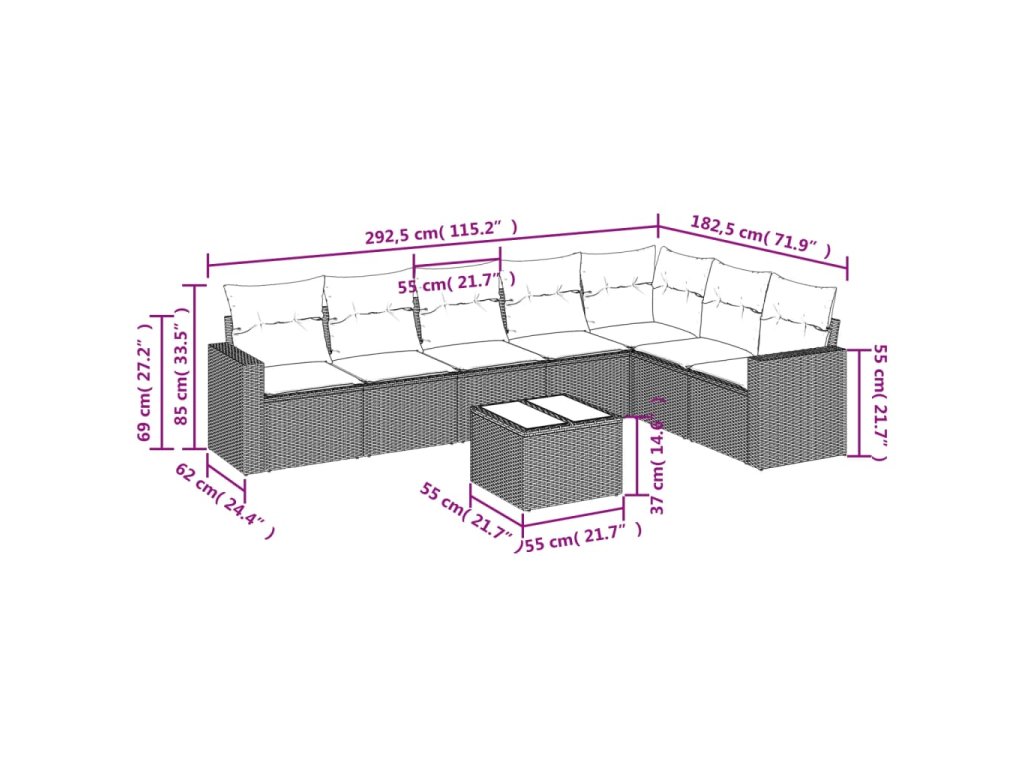 Tato zahradní sedací souprava je dokonalým doplňkem vaší zahrady, terasy nebo dvorku a poskytne vám pohodlné a příjemné místo, kde si můžete povídat s rodinou a přáteli nebo jen tak odpočívat a užívat si pobyt venku.