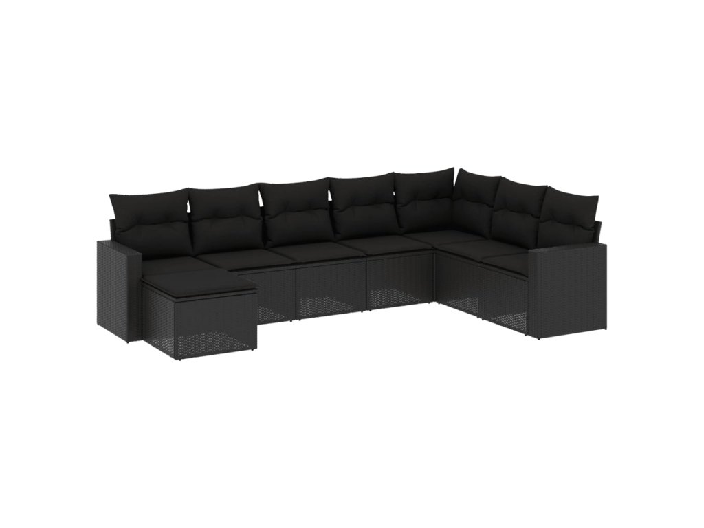 8dílná zahradní sedací souprava s poduškami černá polyratan 3219345