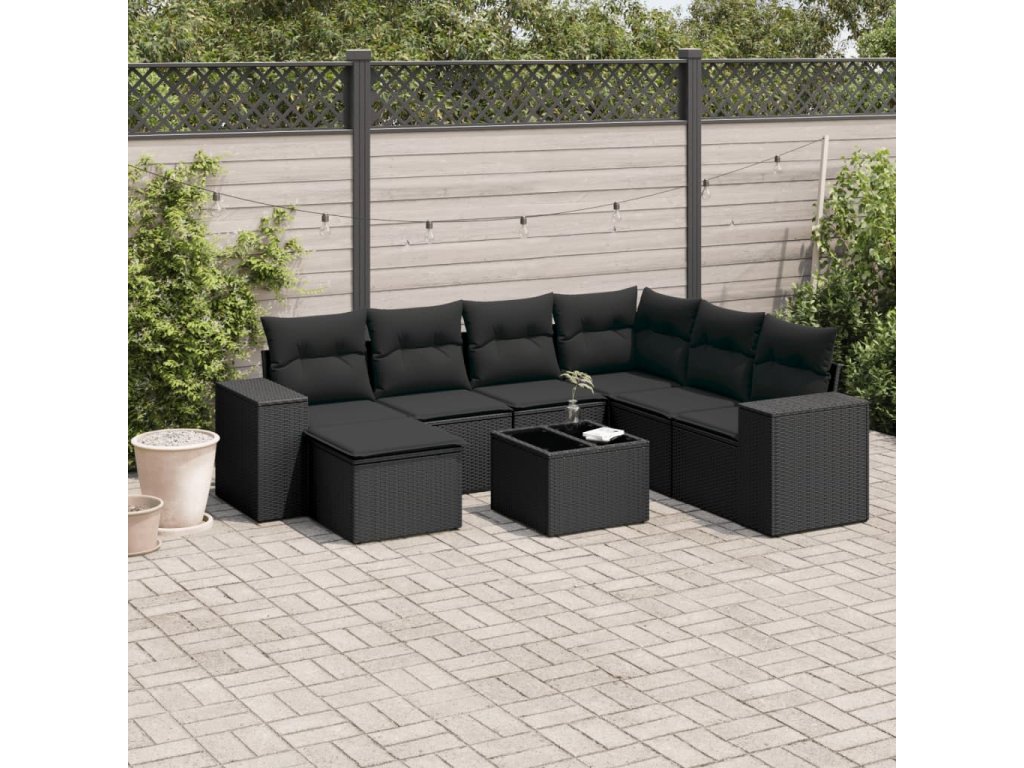 8dílná zahradní sedací souprava s poduškami černá polyratan 3222904