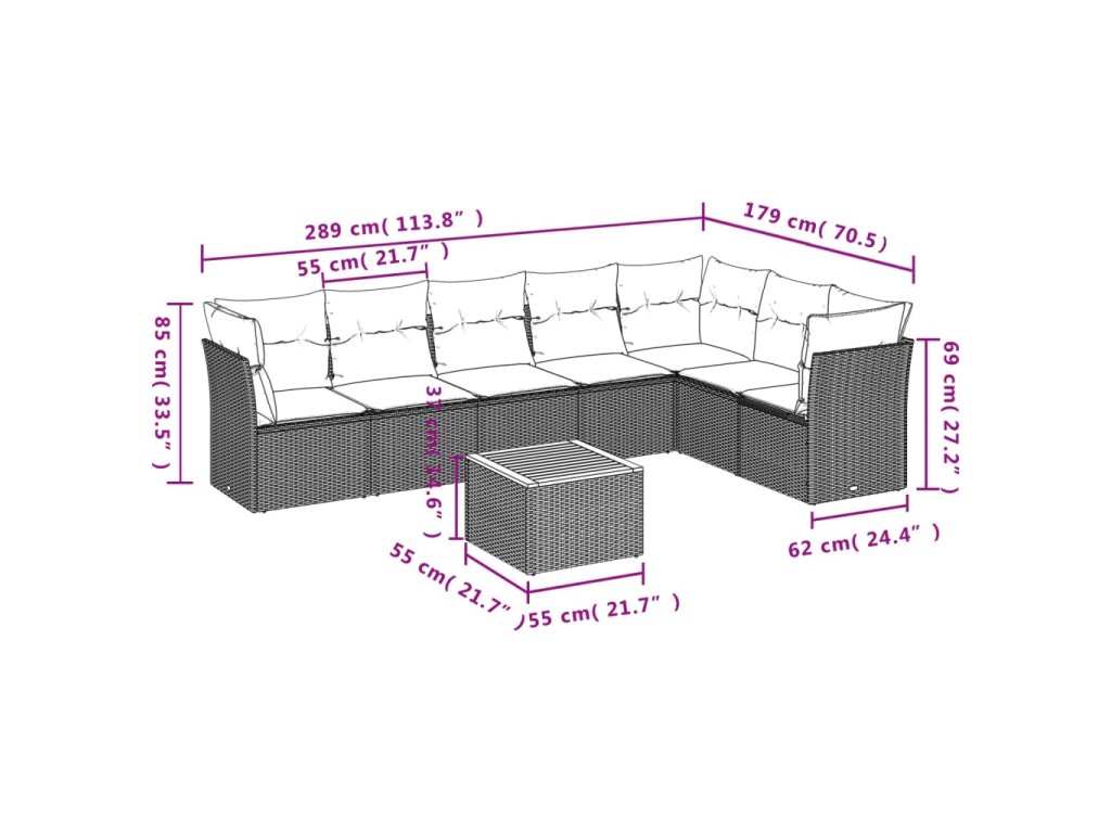 8dílná zahradní sedací souprava s poduškami černá polyratan 3223675