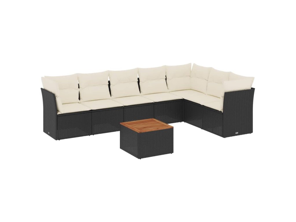 8dílná zahradní sedací souprava s poduškami černá polyratan 3223676