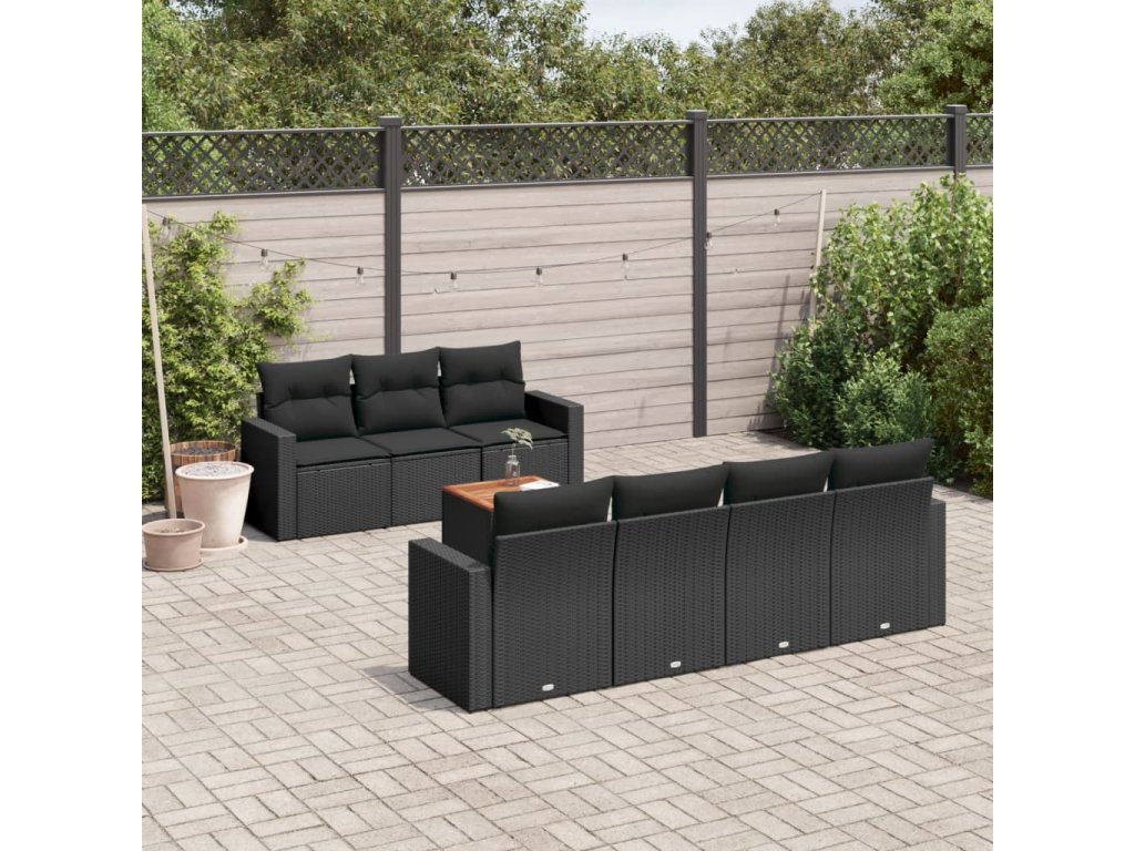 8dílná zahradní sedací souprava s poduškami černá polyratan 3224025