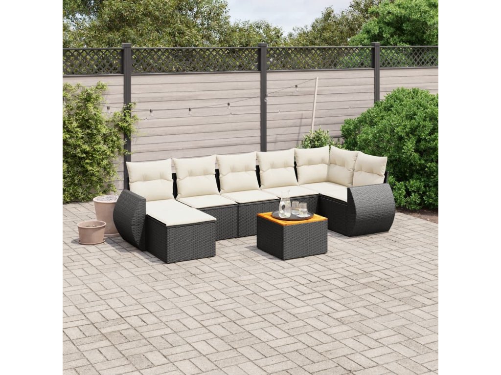 8dílná zahradní sedací souprava s poduškami černá polyratan 3225111