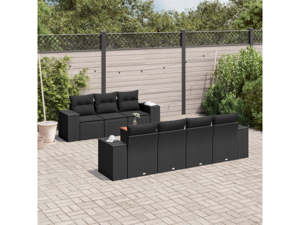 8dílná zahradní sedací souprava s poduškami černá polyratan 3225348