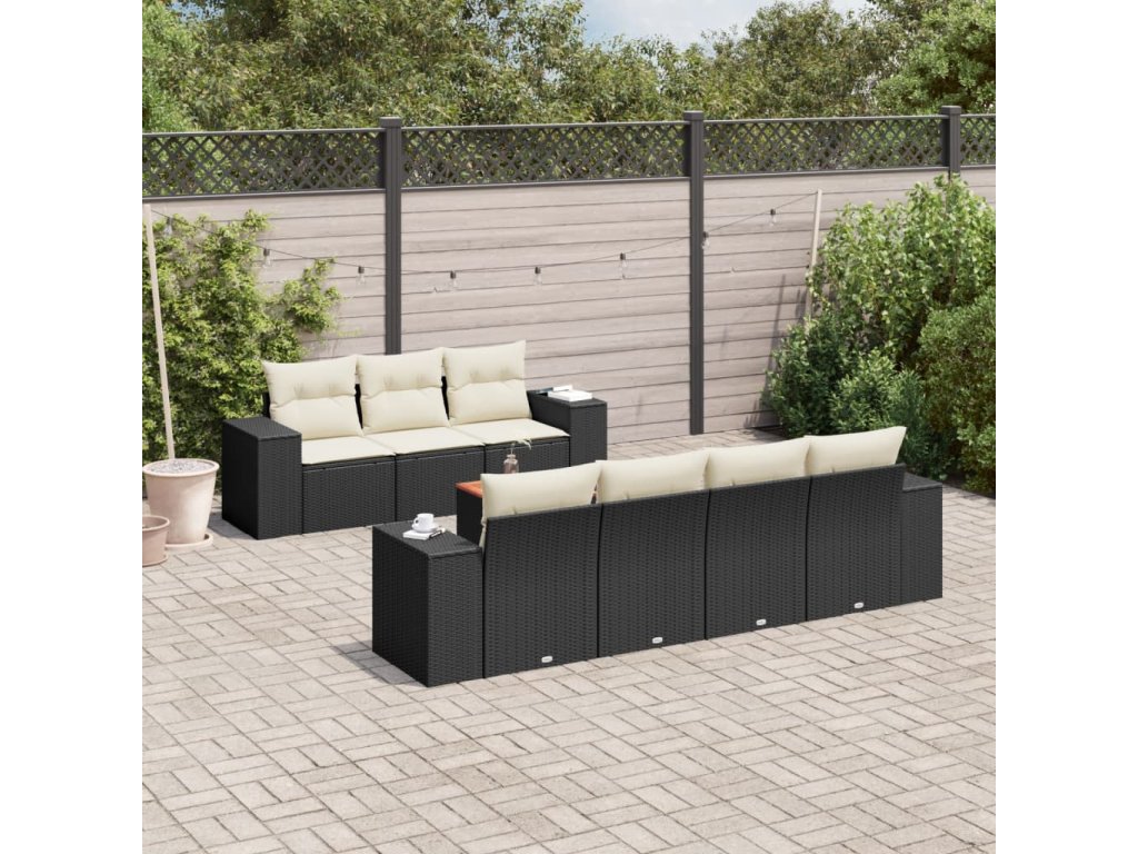 8dílná zahradní sedací souprava s poduškami černá polyratan 3225349