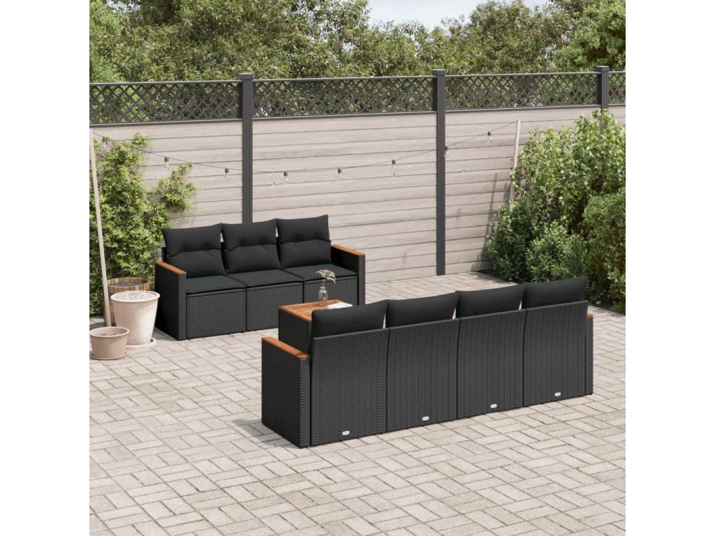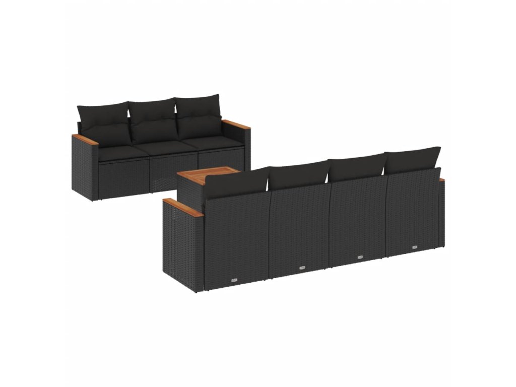 8dílná zahradní sedací souprava s poduškami černá polyratan 3225803