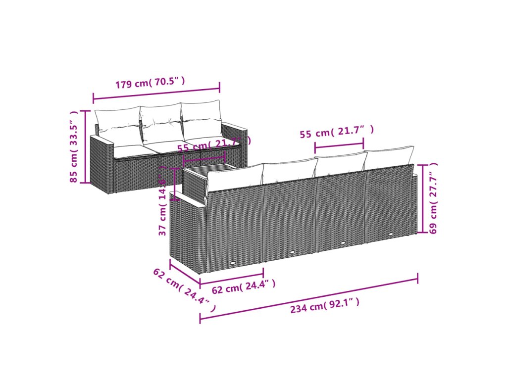 Tato zahradní sedací souprava je dokonalým doplňkem vaší zahrady, terasy nebo dvorku a poskytne vám pohodlné a příjemné místo, kde si můžete povídat s rodinou a přáteli nebo jen tak odpočívat a užívat si pobyt venku.