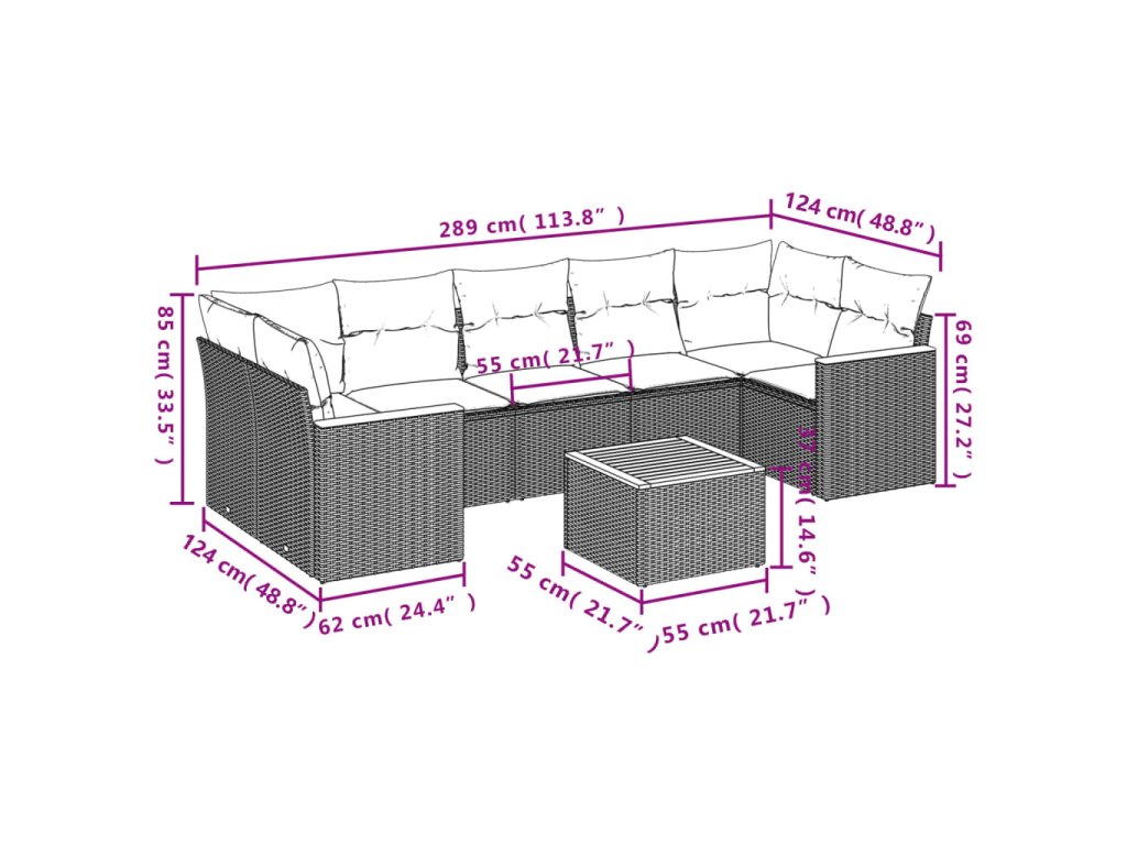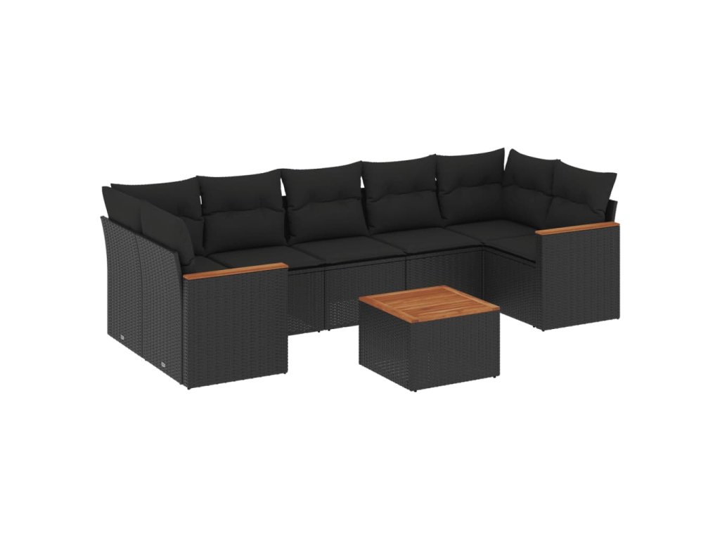 8dílná zahradní sedací souprava s poduškami černá polyratan 3225810