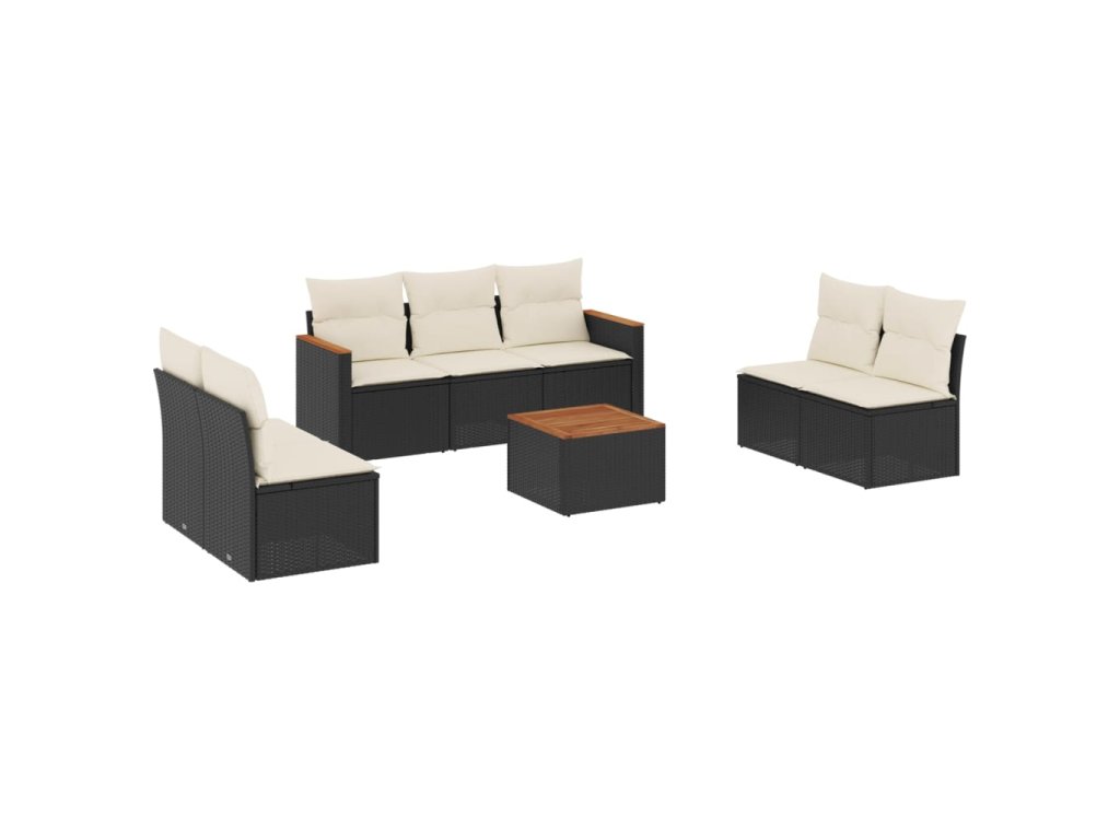 8dílná zahradní sedací souprava s poduškami černá polyratan 3225881