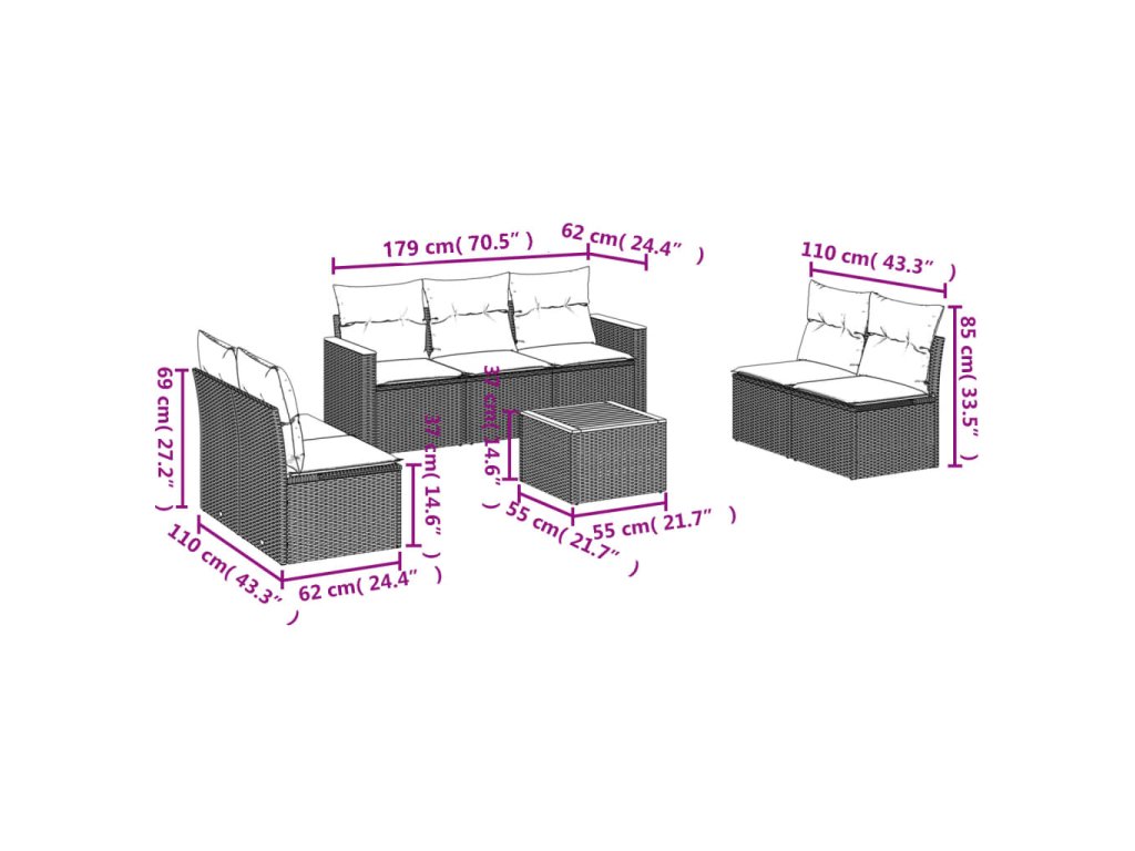 Tato zahradní sedací souprava je dokonalým doplňkem vaší zahrady, terasy nebo dvorku a poskytne vám pohodlné a příjemné místo, kde si můžete povídat s rodinou a přáteli nebo jen tak odpočívat a užívat si pobyt venku.